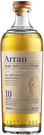 "Arran 10 Ans est un single malt élégant et équilibré. Sa douceur fruitée, avec des notes de pomme, poire et vanille, s’harmonise parfaitement avec des touches de caramel et de noisette. La bouche est ronde et soyeuse, avec une finale longue et délicate."
